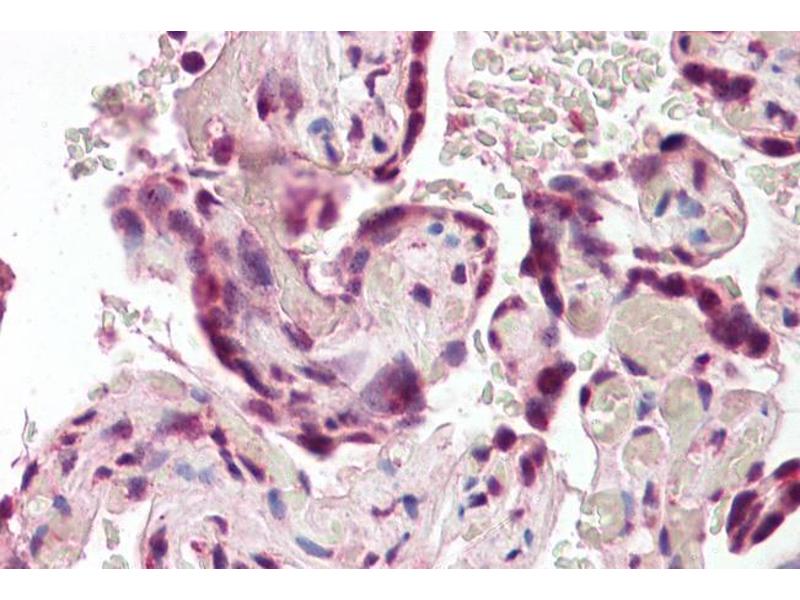 Immunohistochemistry: Paraffin embedded Human Placenta. Recommended concentration: 3.75 μg/mL.