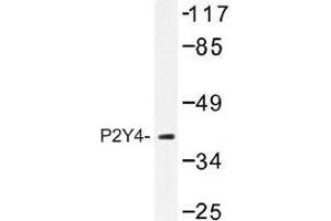 - P2Y4 antibody detects endogenous levels of P2Y4 protein.(region surrounding Val198)