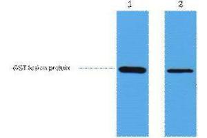 The antibody detects C-terminal, internal, and N-terminal GST fusion proteins.
