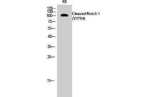- Cleaved-Notch 1 (V1754) Polyclonal Antibody detects endogenous levels of fragment of activated Notch 1 protein resulting from cleavage adjacent to V1754.