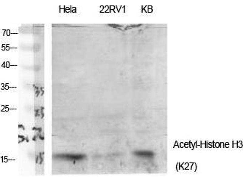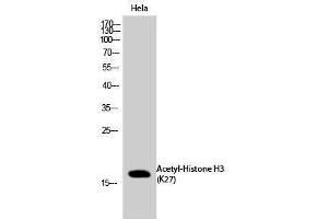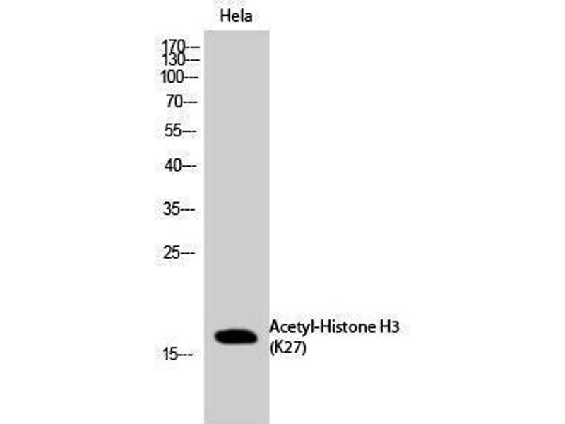 - Acetyl-Histone H3 (K27) Polyclonal Antibody detects endogenous levels of Histone H3 protein only when acetylated at K27.