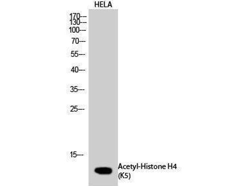 - Acetyl-Histone H4 (K5) Polyclonal Antibody detects endogenous levels of Histone H4 protein only when acetylated at K5.