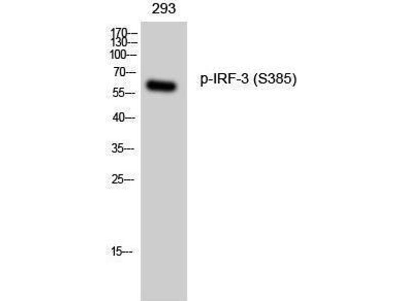 - Phospho-IRF-3 (S385) Polyclonal Antibody detects endogenous levels of IRF-3 protein only when phosphorylated at S385.