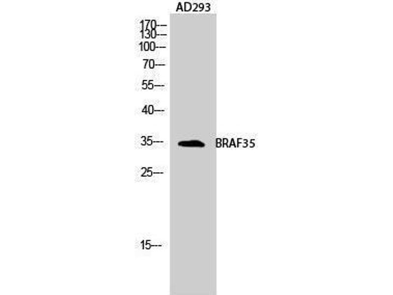BRAF35 Polyclonal Antibody detects endogenous levels of BRAF35 protein.