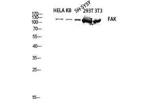 FAK Polyclonal Antibody detects endogenous levels of FAK protein.