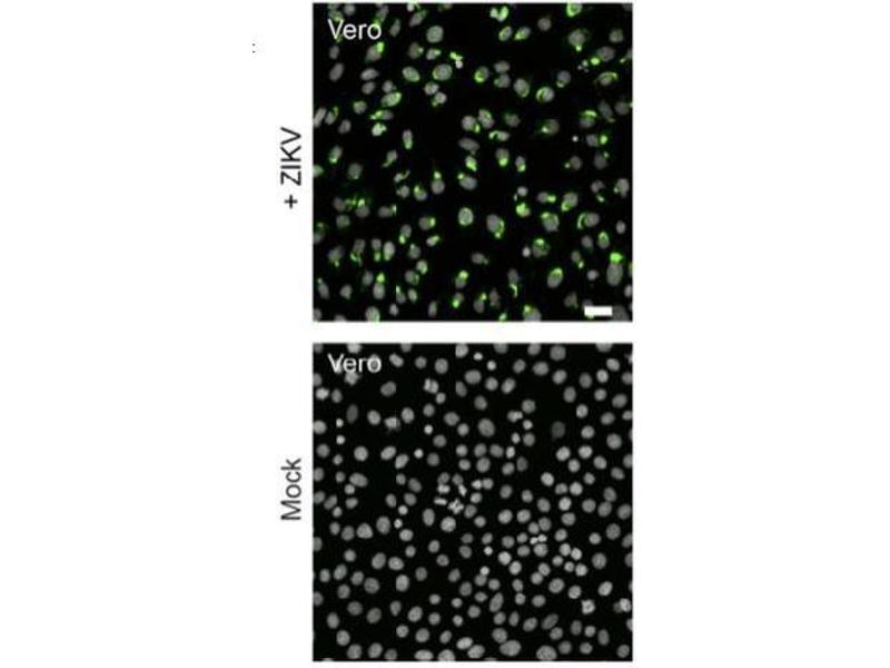 - Mouse monclonal generated against flavivirus envelope proteins. Recognizes Dengue virus, West Nile Virus, Japanese Encephalitis and Zika virus. It binds to domain II of protein E (fusion loop).