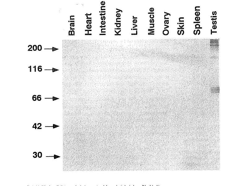 This antibody can be used for immunohistochemical staining of testicular tissues. The hybridoma producing TRA54 was obtained from the immunaization of a rat with cell lysates of adult mouse testes by the group of Prof. Yoshitake Nishimune of Osaka University. -