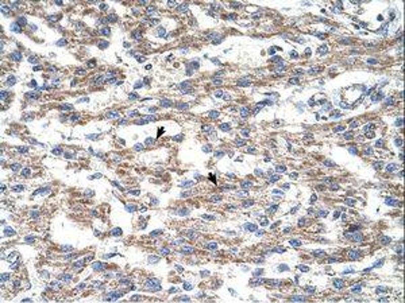 Synthetic peptide from C-Terminus of human DUT (P33316, NP_001020419). Percent identity by BLAST analysis: Human, Gorilla, Gibbon, Monkey, Galago, Mouse, Rat, Dog, Bat, Horse, Guinea pig (100%), Marmoset, Elephant, Bovine, Rabbit, Opossum, Turkey, Zebra finch, Chicken, Platypus (92%), Sablefish (91%), Zebrafish (85%).