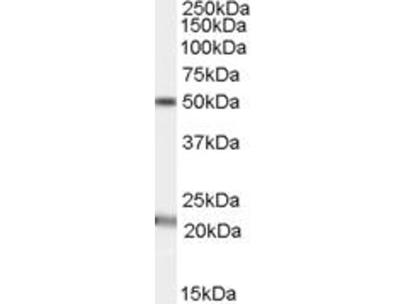 Western Blot: Approx 50 kDa band observed in Human Brain (Substantia nigra, Hippocampus) lysates (calculated MW of 47.1 kDa according to NP_060708.1). Recommended concentration: 1-3 μg/mL. An additional band of unknown identity was also consistently observ