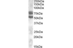 Western Blot: Approx 75 and 52 kDa bands observed in Human Kidney lysates (calculated MW of 73.0 kDa according to NP_542937.1 and of 51.9 kDa according to NP_004383.2). Recommended concentration: 0.1-0.3 μg/mL.