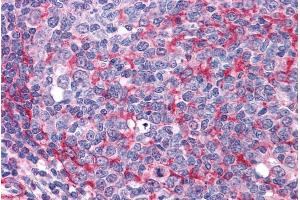 Immunohistochemistry: Paraffin embedded Human Tonsil and Breast. Recommended concentration: 3.75 μg/mL.