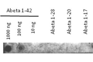 the antibody can detect Abeta(1-42), but does not react with Abeta(1-40), Abeta(1-41), Abeta(1-28) Abeta(1-20) or Abeta(1-17)