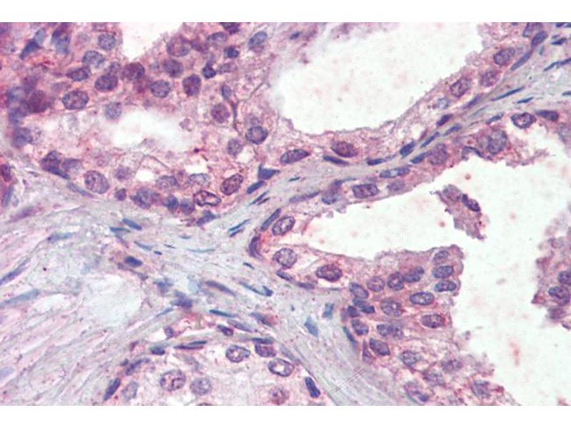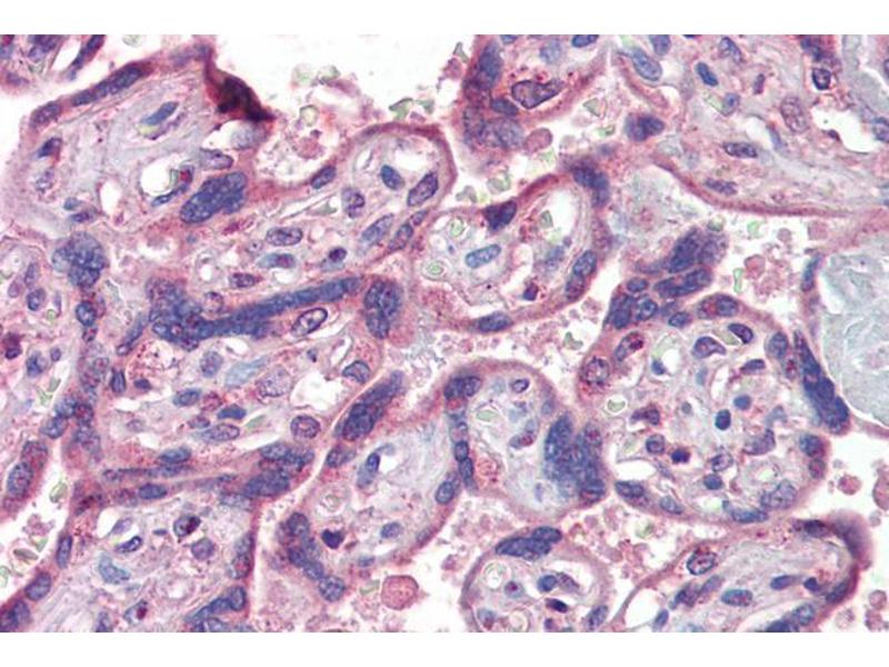 Immunohistochemistry: Paraffin embedded Human Prostate and Placenta. Recommended concentration: 5 μg/mL.