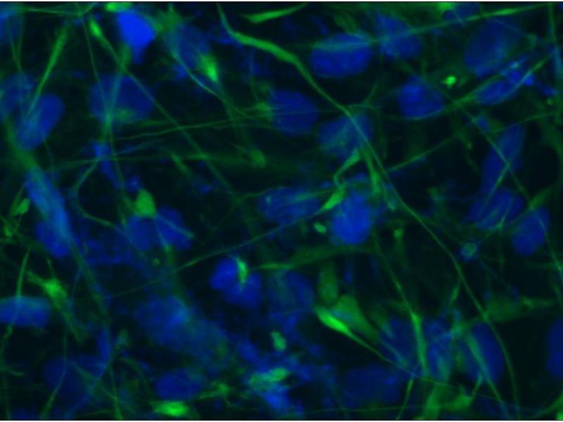 Nestin is a Class IV intermediate filament protein abundantly produced in the developing central nervous system (CNS) and in early embryonic neuroepithelial stem cells. This cytoskeletal protein has been widely used as a predominant marker for stem/progenitor cells, glioma cells, and tumor endothelial cells. Also, it is a superior angiogenic marker to evaluate neovascularity of endothelial cells in tumors. These highly specific antibodies to human nestin can aid in characterizing progenitor cells differentiating into distinct lineages, in enhancing the therapeutic potential of human neural stem/progenitor cells in the treatment of CNS diseases or injury, and in identifying neuroepithelial tumor cells.