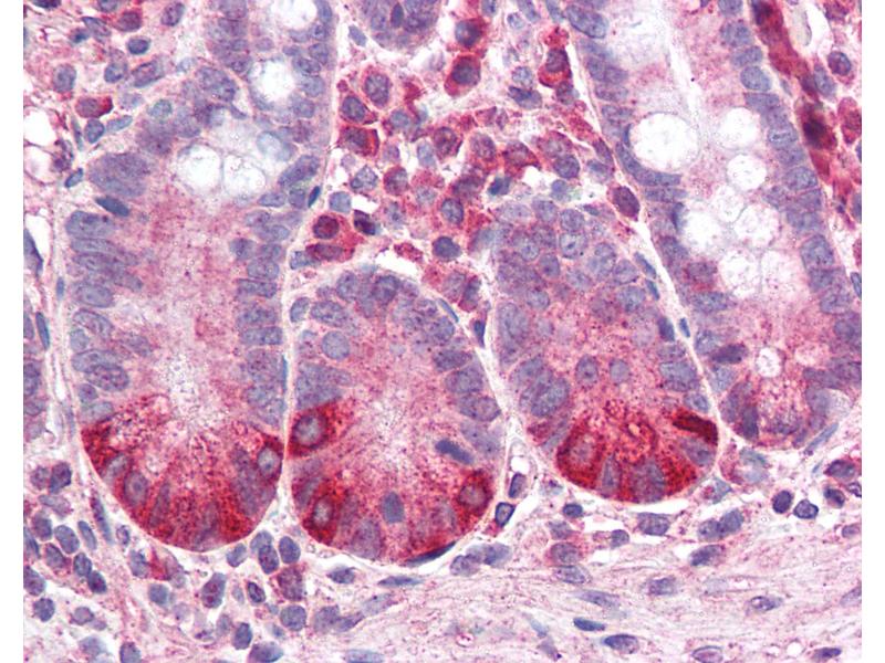 Usage: Immunohistochemistry: This antibody was validated for use in immunohistochemistry on a panel of 21 formalin-fixed, paraffin-embedded (FFPE) human tissues after heat induced antigen retrieval in pH 6.0 citrate buffer. After incubation with the primary antibody, slides were incubated with biotinylated secondary antibody, followed by alkaline phosphatase-streptavidin and chromogen. The stained slides were evaluated by a pathologist to confirm staining specificity. The optimal working concentration for this antibody was determined to be 2.5-5 μg/mL. -
