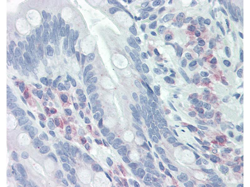 Usage: Immunohistochemistry: This antibody was validated for use in immunohistochemistry on a panel of 21 formalin-fixed, paraffin-embedded (FFPE) human tissues after heat induced antigen retrieval in pH 6.0 citrate buffer. After incubation with the primary antibody, slides were incubated with biotinylated secondary antibody, followed by alkaline phosphatase-streptavidin and chromogen. The stained slides were evaluated by a pathologist to confirm staining specificity. The optimal working concentration for this antibody was determined to be 5 μg/mL. -