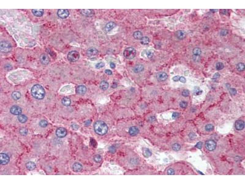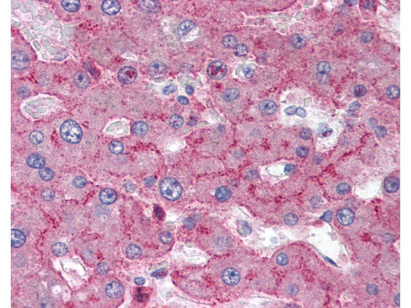 Usage: Immunohistochemistry: This antibody was validated for use in immunohistochemistry on a panel of 21 formalin-fixed, paraffin-embedded (FFPE) human tissues after heat induced antigen retrieval in pH 6.0 citrate buffer. After incubation with the primary antibody, slides were incubated with biotinylated secondary antibody, followed by alkaline phosphatase-streptavidin and chromogen. The stained slides were evaluated by a pathologist to confirm staining specificity. The optimal working concentration for this antibody was determined to be 5-10 μg/mL. Flow Cytometry: 1:50-1:100. Use 10 μL to label 10^6 cells in 100 μL. Western Blot: non-reducing conditions. Positive control: Liver. -