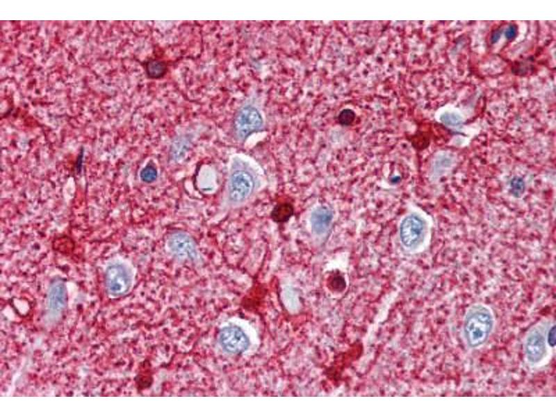 Usage: Immunohistochemistry: This antibody was validated for use in immunohistochemistry on a panel of 21 formalin-fixed, paraffin-embedded (FFPE) human tissues after heat induced antigen retrieval in pH 6.0 citrate buffer. After incubation with the primary antibody, slides were incubated with biotinylated secondary antibody, followed by alkaline phosphatase-streptavidin and chromogen. The stained slides were evaluated by a pathologist to confirm staining specificity. The optimal working concentration for this antibody was determined to be 10 μg/mL. Western Blot: 1:500. Single band in sheep and rat brain. Positive control: Rat brain tissue, rat brain cytosolic fraction, human brain lysate. -