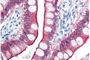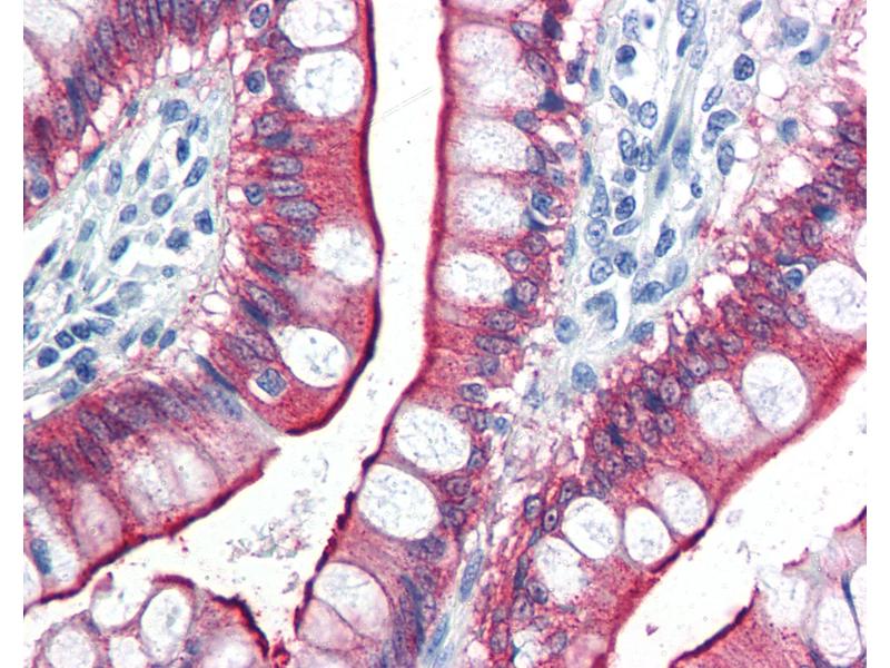 Usage: Immunohistochemistry: This antibody was validated for use in immunohistochemistry on a panel of 21 formalin-fixed, paraffin-embedded (FFPE) human tissues after heat induced antigen retrieval in pH 6.0 citrate buffer. After incubation with the primary antibody, slides were incubated with biotinylated secondary antibody, followed by alkaline phosphatase-streptavidin and chromogen. The stained slides were evaluated by a pathologist to confirm staining specificity. The optimal working concentration for this antibody was determined to be 10 μg/mL. Positive control: Small intestine and kidney. -