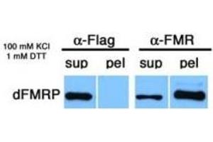 - Drosophila FMR1 (does not cross react with human). Detects a band of approximately 85 kD