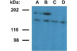 The antibody UBN1-02 recognizes N-terminal part of ubinuclein 1 (UBN1), a widely expressed nuclear and adhesion complex protein. Western blotting analysis reveals UBN1 as a 165 kDa band.