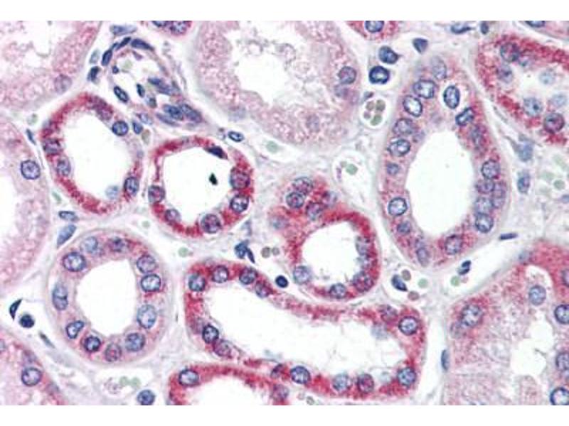 Usage: Immunohistochemistry: This antibody was validated for use in immunohistochemistry on a panel of 21 formalin-fixed, paraffin-embedded (FFPE) human tissues after heat induced antigen retrieval in pH 6.0 citrate buffer. After incubation with the primary antibody, slides were incubated with biotinylated secondary antibody, followed by alkaline phosphatase-streptavidin and chromogen. The stained slides were evaluated by a pathologist to confirm staining specificity. The optimal working concentration for this antibody was determined to be 5 μg/mL. -