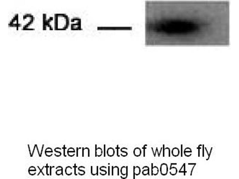 - Reacts with Drosophila melanogaster 42 kDa spict protein