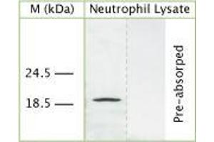 - A synthetic peptide from human Cathelicidin antimicrobial peptide conjugated to blue carrier protein has been used as the antigen.