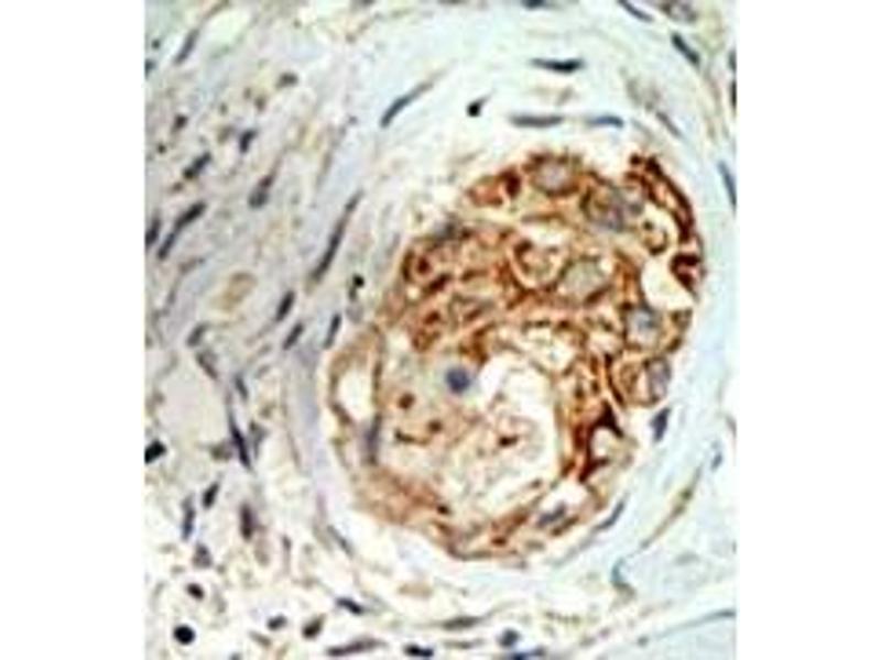 ELISA: 1/1,000. Western Blot: 1/100-1/500. Immunohistochemistry: 1/50-1/100. Other applications not tested. Optimal dilutions are dependent on conditions and should be determined by the user.