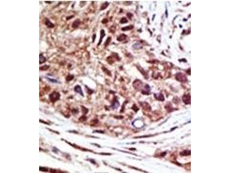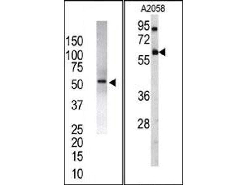 ELISA: 1/1,000. Western Blot: 1/100-1/500. Immunohistochemistry: 1/50-1/100. Other applications not tested. Optimal dilutions are dependent on conditions and should be determined by the user.