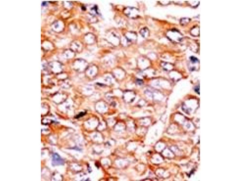 ELISA: 1/1,000. Western Blot: 1/100-1/500. Immunohistochemistry: 1/50-1/100. Other applications not tested. Optimal dilutions are dependent on conditions and should be determined by the user.