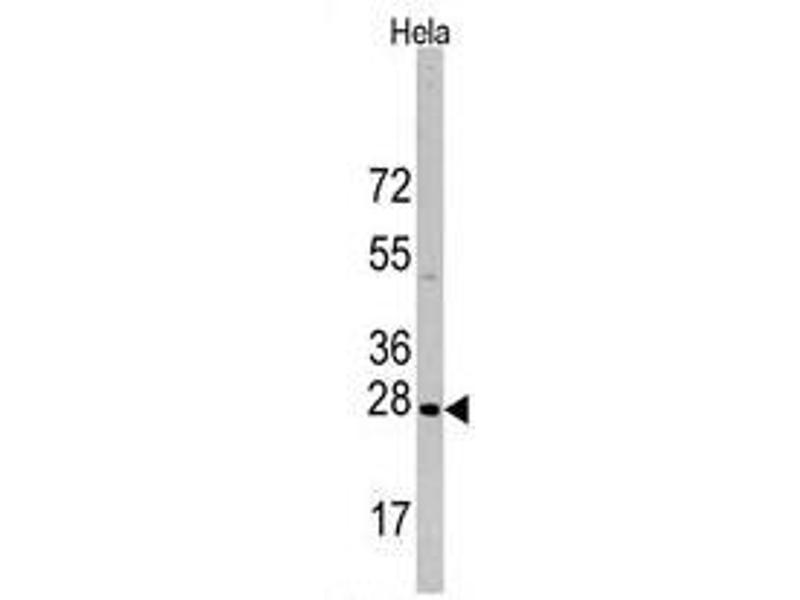 In response to adverse changes in their environment, cells from many organisms increase the expression of a class of proteins referred to as heat shock or stress proteins. HSBP1 exhibits rapid increased phosphorylation in response to various mitogens, tumor promoters (e.g. phorbol esters) and calcium ionophores, and high levels are associated with carcinoma of the breast and with endometrial adenocarcinomas. Heat shock of HeLa cell cultures, or treatment with arsenite, phorbol ester, or tumor necrosis factor, causes a rapid phosphorylation of preexisting HSBP1, with Ser82 as the major site and Ser78 the minor site of phosphorylation. HSBP1 may exert phosphorylation-activated functions linked with growth signaling pathways in unstressed cells. A homeostatic function at this level could protect cells from adverse effects of signal transduction systems which may be activated inappropriately during stress.Synonyms: 28 kDa heat shock protein, Estrogen-regulated 24 kDa protein, HSP25, HSP28, Heat shock 27 kDa protein, Heat shock protein beta-1, SRP27, Stress-responsive protein 27