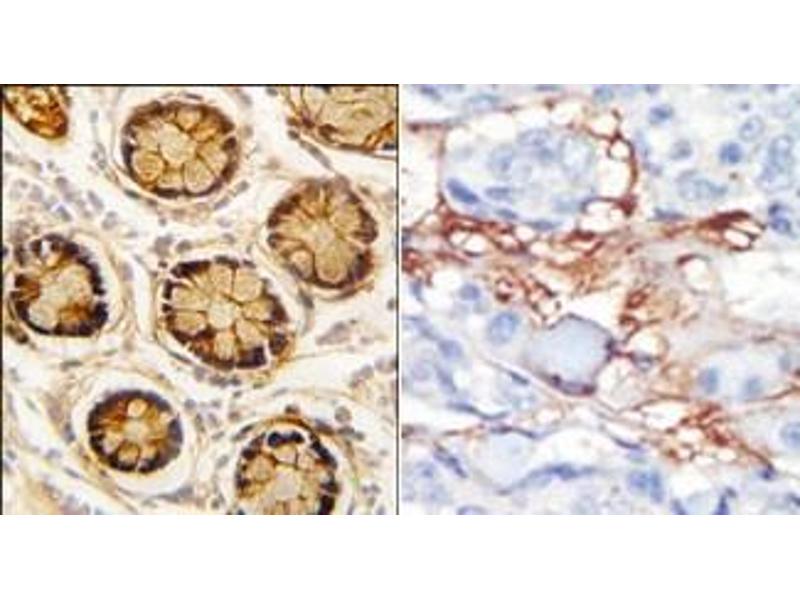 ELISA: 1/1,000. Western blotting: 1/50 - 1/100. Immunohistochemistry: 1/50 - 1/100. Other applications not tested. Optimal dilutions are dependent on conditions and should be determined by the user.