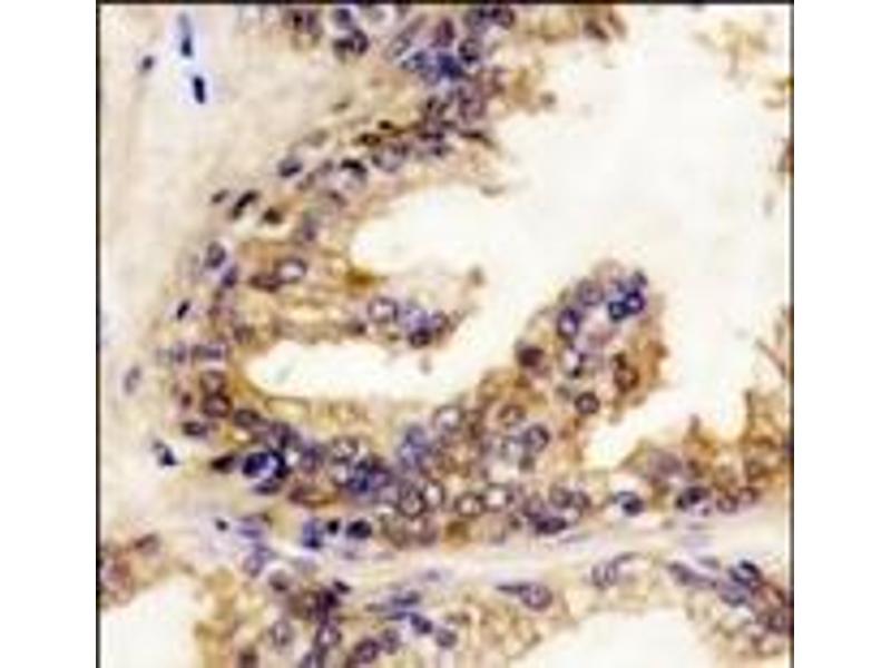 BRAF, a mebmer of the RAF subfamily of Ser/Thr protein kinases, is involved in the transduction of mitogenic signals from the cell membrane to the nucleus. It may play a role in the postsynaptic responses of hippocampal neuron. This cytoplasmic protein is expressed in brain and testis. Defects in BRAF are involved in a wide range of cancers including lung cancer and non-Hodgkin lymphoma (NHL). This protein contains 1 zinc-dependent phorbol-ester and DAG binding domain.Synonyms: B-Raf proto-oncogene serine/threonine-protein kinase, BRAF, BRAF1, RAFB1, p94, v-Raf murine sarcoma viral oncogene homolog B1