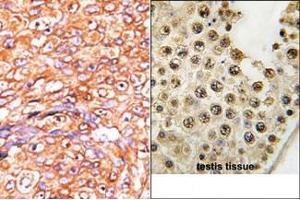ELISA: 1/1,000. Western blotting: 1/100 - 1/500. Immunohistochemistry: 1/50 - 1/100.