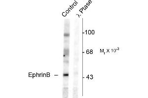 - Specific for endogenous levels of the ~46 kDa EphrinB protein phosphorylated at Tyr331. Immunolabeling is completely eliminated by treatment with λ-phosphatase.