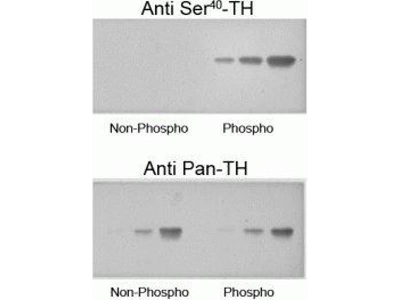 - Specific for endogenous levels of the ~60 kDa tyrosine hydroxylase protein phosphorylated at Ser40. Some higher molecular weight bands may be detected by the antibody depending upon the brain region being studied, protein loads and the detection methods used. The antibody has three orders of magnitude selectivity over non-phospho TH.