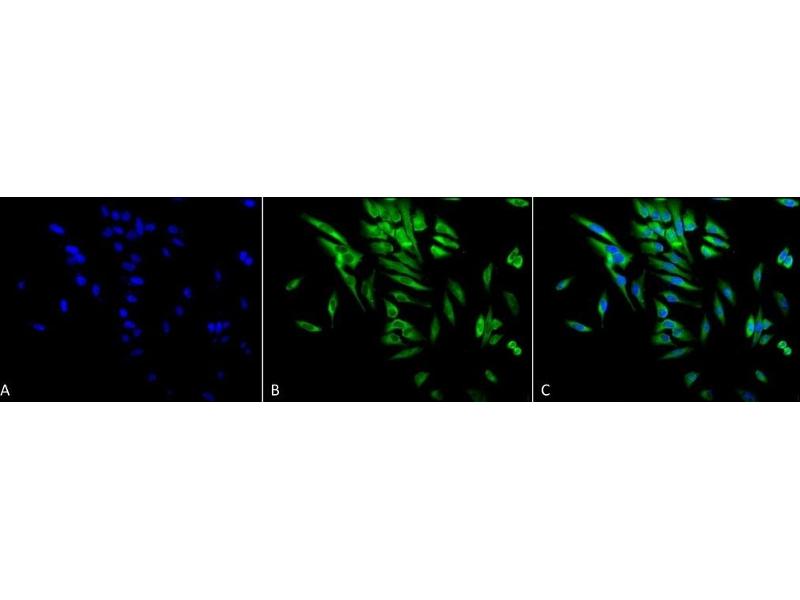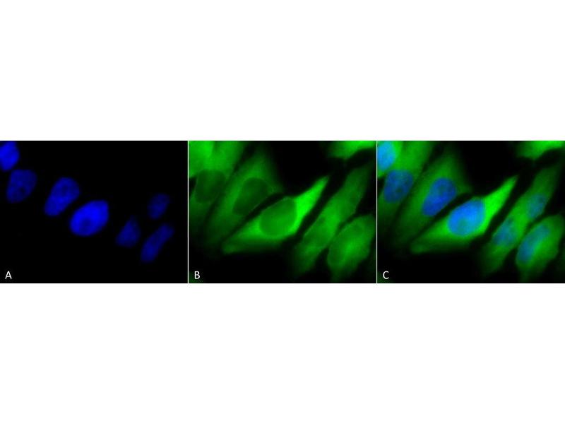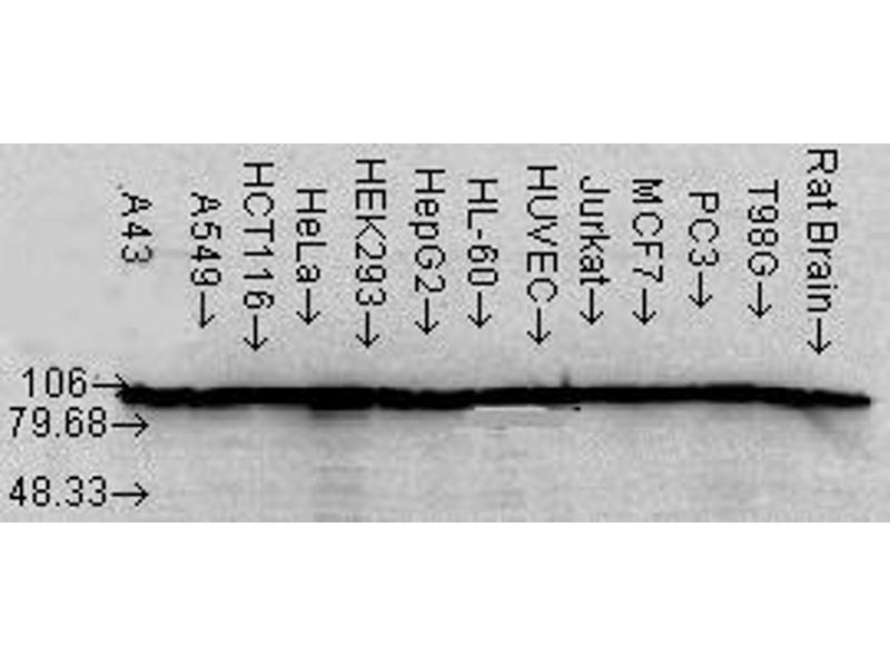- HSP90 is an abundantly and ubiquitously expressed heat shock protein. It is understood to exist in two principal forms α and β, which share 85 % sequence amino acid homology. The two isoforms of HSP90 are expressed in the cytosolic compartment (1). Despite the similarities, HSP90α exists predominantly as a homodimer while HSP90β exists mainly as a monomer (2). From a functional perspective, HSP90 participates in the folding, assembly, maturation, and stabilization of specific proteins as an integral component of a chaperone complex (3-6). Furthermore, HSP90 is highly conserved between species, having 60 % and 78 % amino acid similarity between mammalian and the corresponding yeast and Drosophila proteins, respectively. HSP90 is a highly conserved and essential stress protein that is expressed in all eukaryotic cells. Despite its label of being a heat-shock protein, HSP90 is one of the most highly expressed proteins in unstressed cells (1-2 % of cytosolic protein). It carries out a number of housekeeping functions - including controlling the activity, turnover, and trafficking of a variety of proteins. Most of the HSP90-regulated proteins that have been discovered to date are involved in cell signaling (7-8). The number of proteins now know to interact with HSP90 is about 100. Target proteins include the kinases v-Src, Wee1, and c-Raf, transcriptional regulators such as p53 and steroid receptors, and the polymerases of the hepatitis B virus and telomerase (5). When bound to ATP, HSP90 interacts with co-chaperones Cdc37, p23, and an assortment of immunophilin-like proteins, forming a complex that stabilizes and protects target proteins from proteasomal degradation. In most cases, HSP90-interacting proteins have been shown to co-precipitate with HSP90 when carrying out immunoadsorption studies, and to exist in cytosolic heterocomplexes with it. In a number of cases, variations in HSP90 expression or HSP90 mutation has been shown to degrade signaling function via the protein or to impair a specific function of the protein (such as steroid binding, kinase activity) in vivo. Ansamycin antibiotics, such as geldanamycin and radicicol, inhibit HSP90 function (9). For more information visit our HSP90 Scientific Resource Guide at http://www.HSP90.ca.