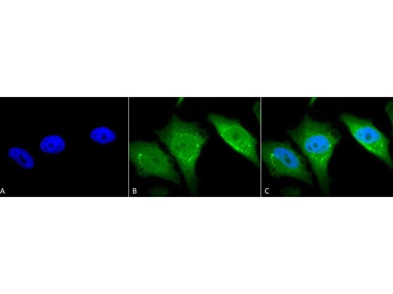 A 1:2000 dilution of ABIN361782 was sufficient for detection of Calnexin in 10 μg of HeLa cell lysate by ECL immunoblot analysis.
