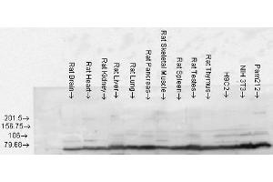 A 1:1000 dilution of ABIN361824 was sufficient for detection of Grp78 in 10 μg of rat tissue lysate by ECL immunoblot analysis.