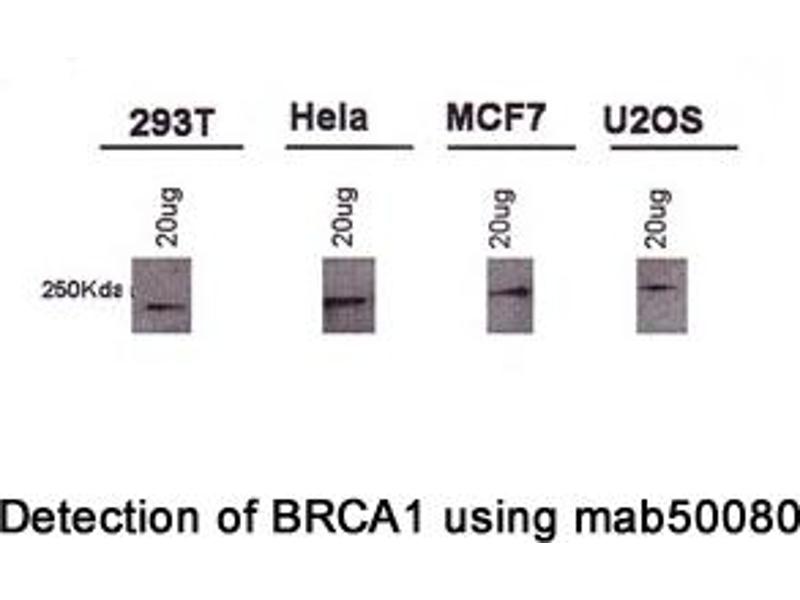 - Reacts with human BRCA1 protein