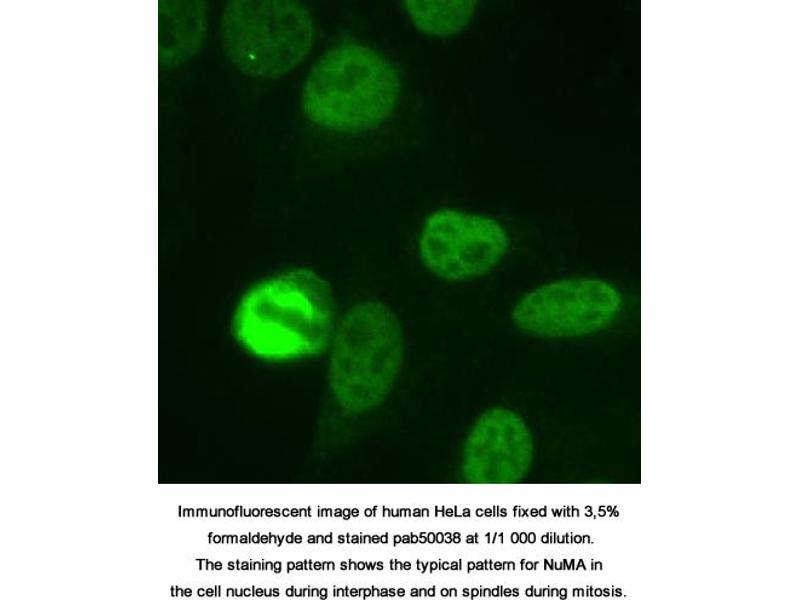 - Reacts with NuMA from human, mouse, rat, mammal, primate