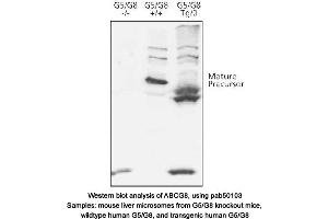 - Reacts with human ~75 kDa ABCG8 protein