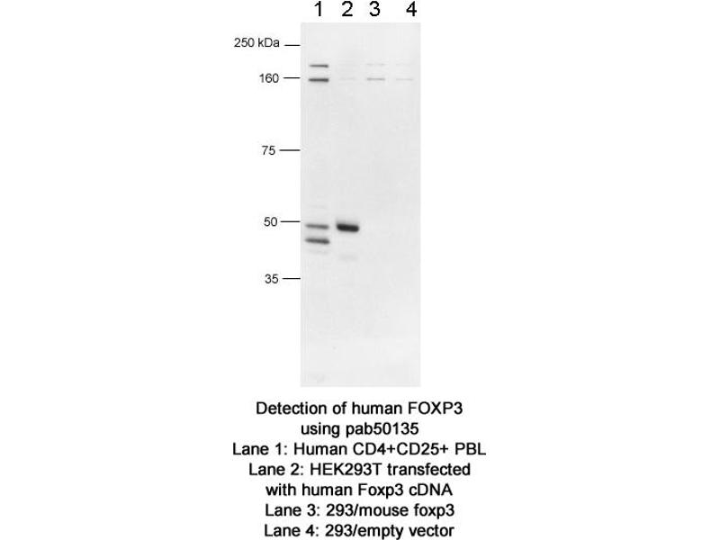 - Reacts with human FOXP3 protein