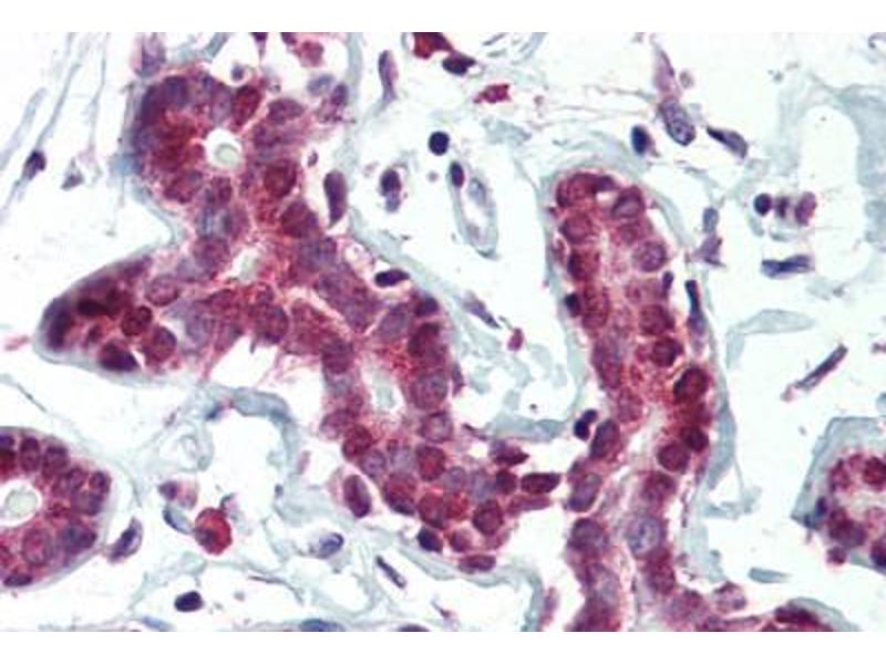 Usage: Immunohistochemistry: This antibody was validated for use in immunohistochemistry on a panel of 21 formalin-fixed, paraffin-embedded (FFPE) human tissues after heat induced antigen retrieval in pH 6.0 citrate buffer. After incubation with the primary antibody, slides were incubated with biotinylated secondary antibody, followed by alkaline phosphatase-streptavidin and chromogen. The stained slides were evaluated by a pathologist to confirm staining specificity. The optimal working concentration for this antibody was determined to be 5 μg/mL. -