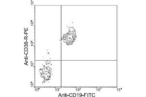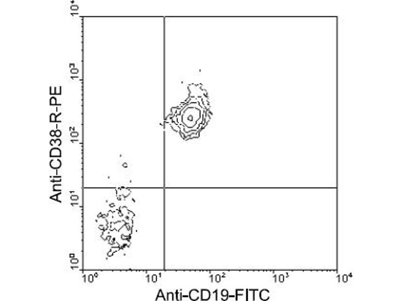 This antibody is specific to CD38 (Mr. 42-46 kDa). Monoclonal antibodies to CD38 have been shown to induce B- and T-cell proliferation, protect B cells from apoptosis, and inhibit B lymphopoiesis. (Ref.1-8)