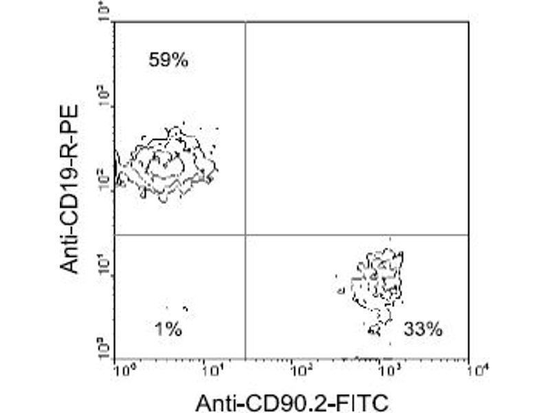 CD90/Thy-1 is a GPI-anchored molecule and one of the smallest members of the immunoglobulin superfamily, consisting of a single V-set domain. (Ref.1-3) The Thy-1.2 alloantigen is expressed on all thymocytes, peripheral T lymphocytes, and some intraepithelial T cells of most mouse strains. It is also expressed in the brain and at varying levels on other non-lymphoid tissues. The 30-H12 monoclonal antibody does not cross react with Mouse and Rat strains bearing the Thy-1.1 alloantigen (e.g., AKR/J,PL). (Ref.2-5).Synonyms: CD90, Thy-1, Thy-1 membrane glycoprotein, Thy-1.2, Thy1.2