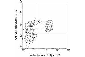 The CD8 antigen is a cell surface glycoprotein found on most cytotoxic T lymphocytes that mediates efficient cell to cell interactions within the immune system. The CD8 antigen, acting as a coreceptor, and the T cell receptor on the T lymphocyte recognize antigen displayed by an antigen presenting cell (APC) in the context of class I MHC molecules. The functional coreceptor is either a homodimer composed of two alpha chains, or a heterodimer composed of one alpha and one beta chain. Both alpha and beta chains share significant homology to immunoglobulin variable light chains. Chicken CD8 is expressed on approximately 80 % of thymocytes, 45 % of blood mononuclear cells and 50 % of spleen cells, but <1 % of cells in the bursa and bone marrow. (Ref.1,2)Synonyms: CD8B, CD8B1, T-cell surface glycoprotein CD8 beta chain
