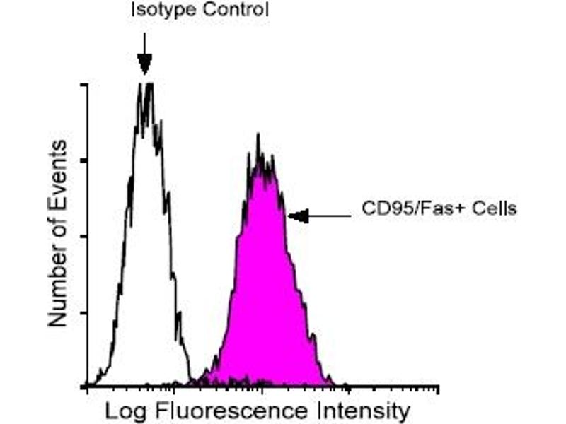 This antibody recognizes CD95/Fas/Apo-1. Crosslinking of CD95 by the Monoclonal antibodies DX2 and DX3 delivers an apoptotic signal to Fas-sensitive cells, indicating that these monoclonal antibodies recognize a functional epitope of CD95. (Ref.1-5)