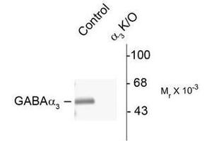 - Specific for the ~51k Alpha-3 subunit of the GABAA receptor in Western blots. Labeling is absent in Alpha-3 subunit knockout animals.